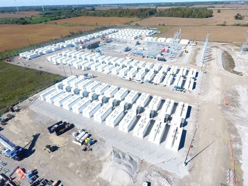 Oneida – 250MW BESS in Ontario under construction. This photo contains about 140 containers in comparison to the Marchurst BESS which is expected to have 248+ containers